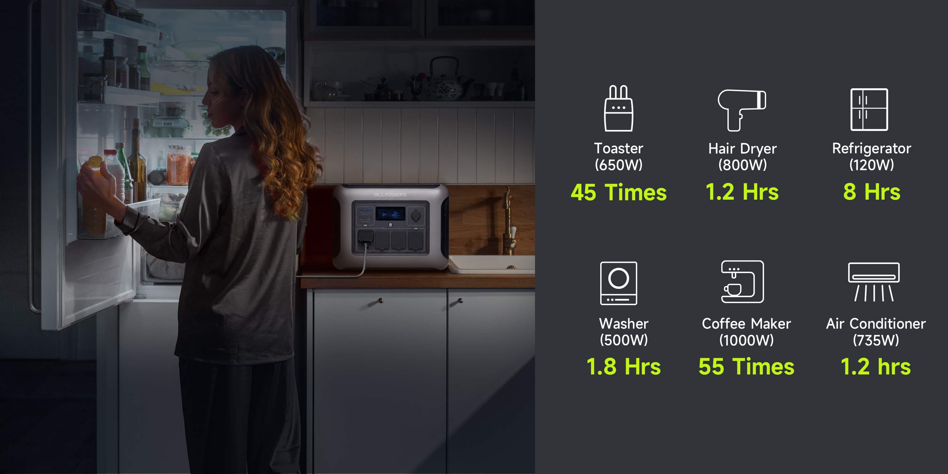 El R1500 LITE cuenta con una impresionante capacidad de 1056Wh y una salida de 1600W, lo que le permite alimentar el 99% de los electrodomésticos. Utilícelo para hacer funcionar la mayoría de sus herramientas y aparatos en actividades al aire libre o durante emergencias domésticas, brindándole total confianza en cualquier situación.