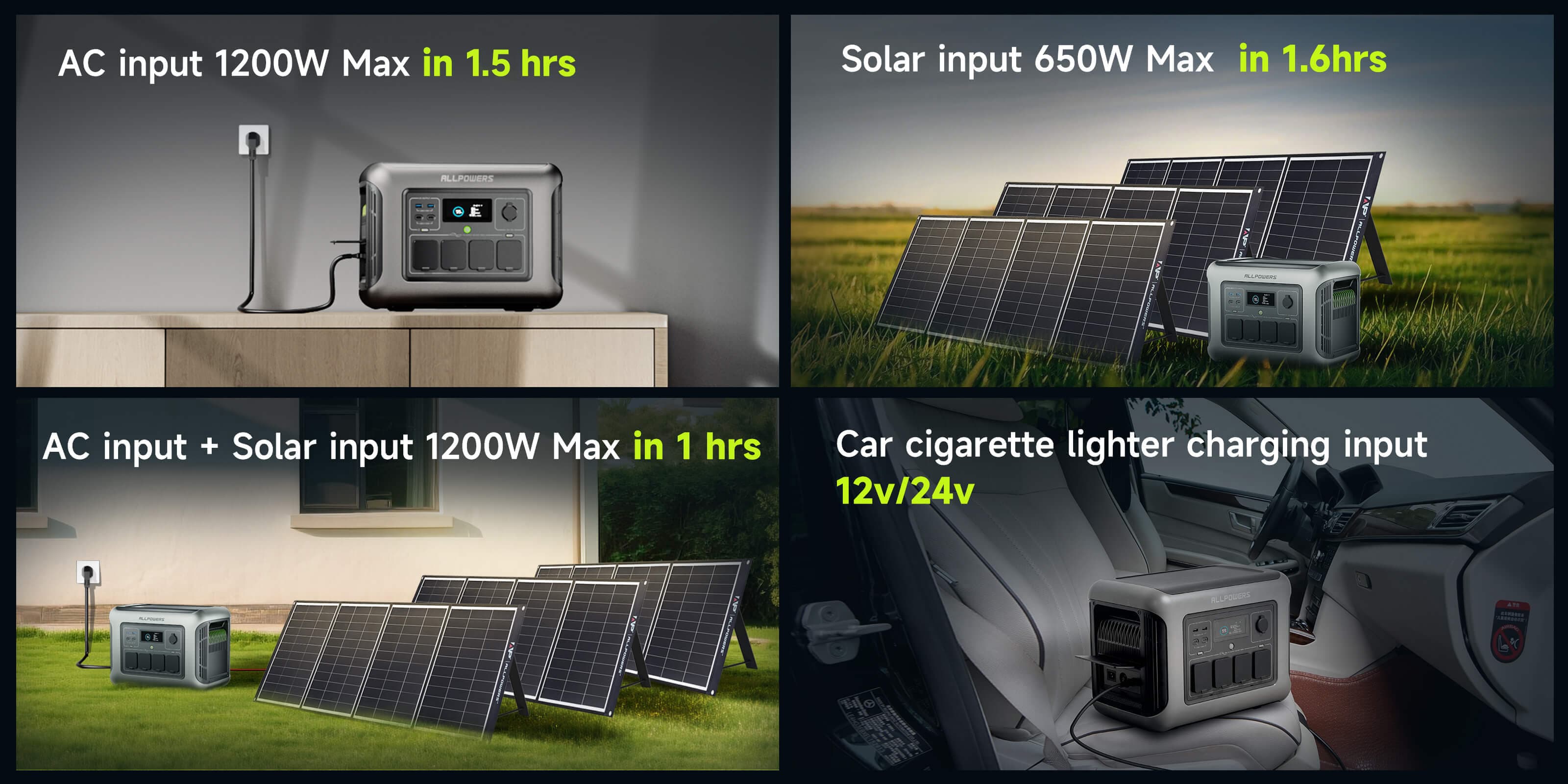 - Carga Súper Rápida: Recarga del 0 al 100% en solo 1.5 horas a través de la entrada de CA (Máx. 1200W). Menos espera, más uso.