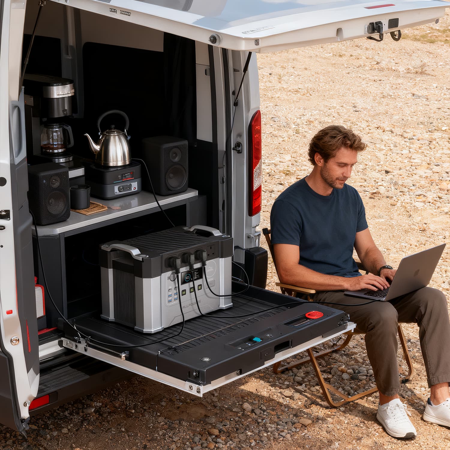 From charging at home to more mobile solutions, we offer five ways to charge your S2000 PRO: AC charging, car charging, solar charging, dual charging (AC+solar ).