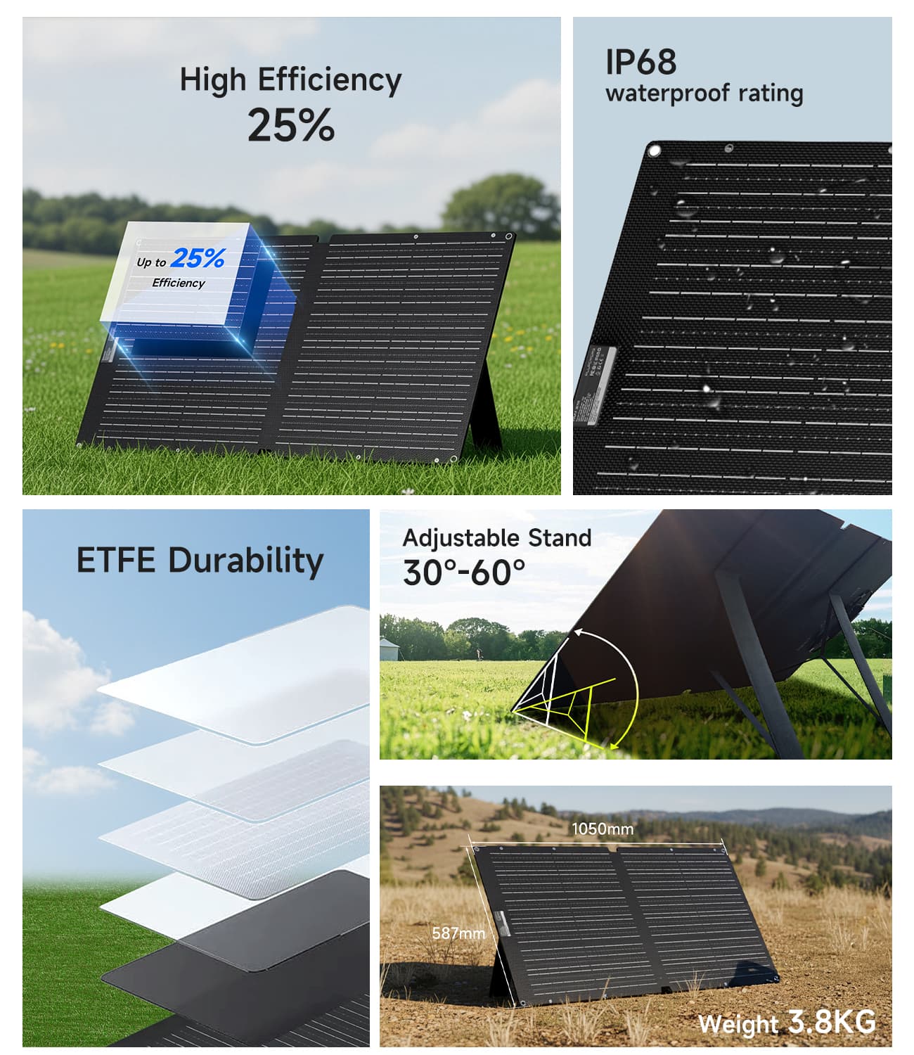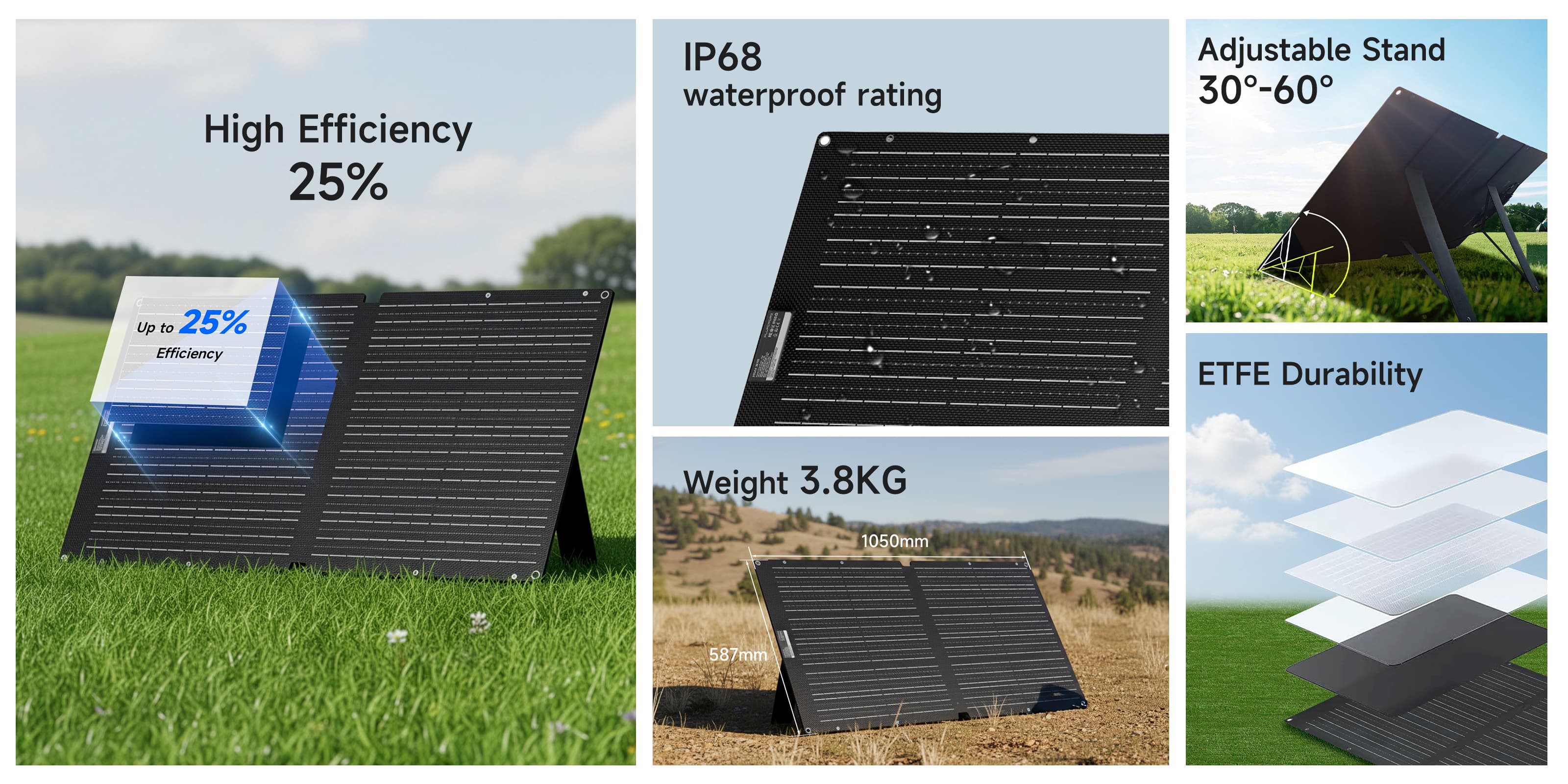 ALLPOWERS SOLAX SE100 Panel Solar Portátil 100W | Alta Eficiencia 25% | Diseño IP68