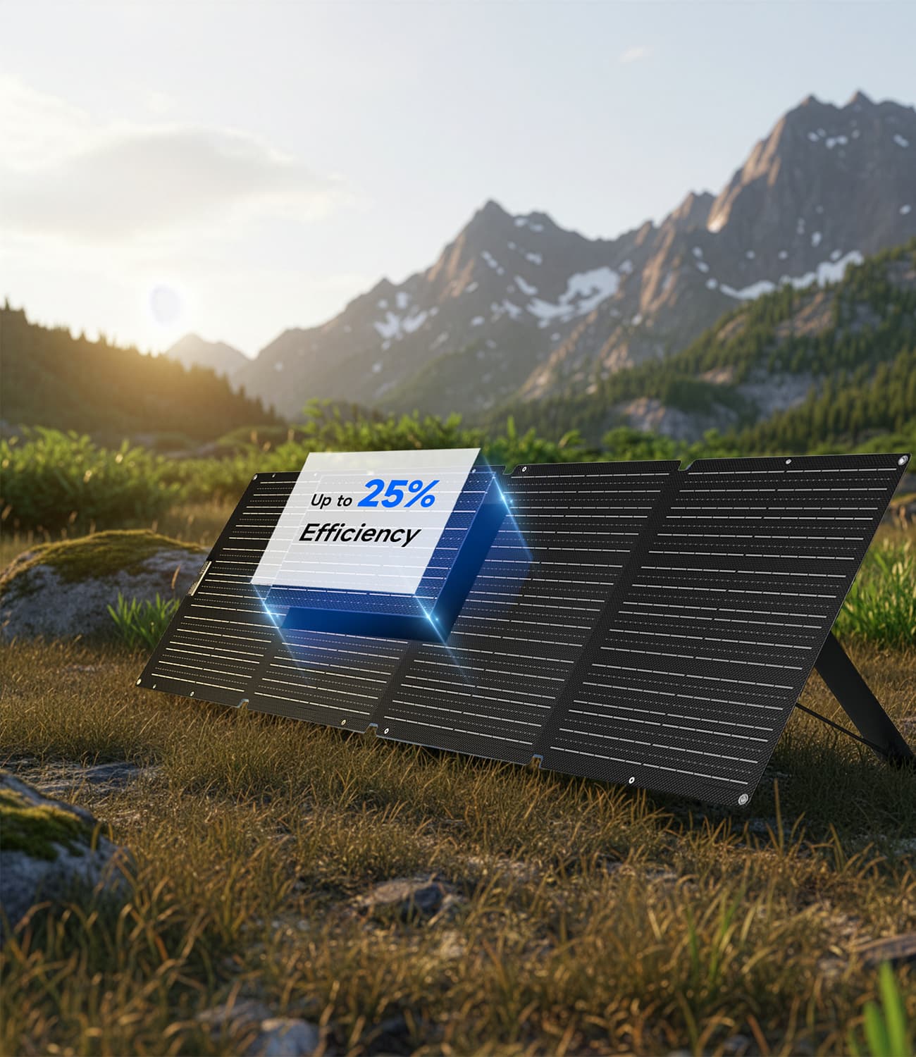 - Eficiencia Récord (23-25%): Tecnología de silicio monocristalino y superficie ETFE para una máxima captura de luz solar.